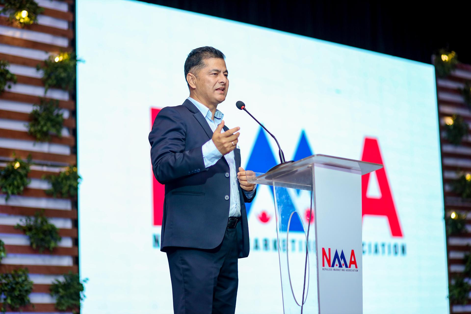 Nepalese Marketing Association celebrated it's first year anniversary on 24th December 2022 at Hotel Yak and Yeti. Program started with welcome speech by Mr. Abhaya Gorkhalee (Board member of NMA), with the valuable presence of Hon. Member of Parliament Mr. Gagan Thapa as chief guest.